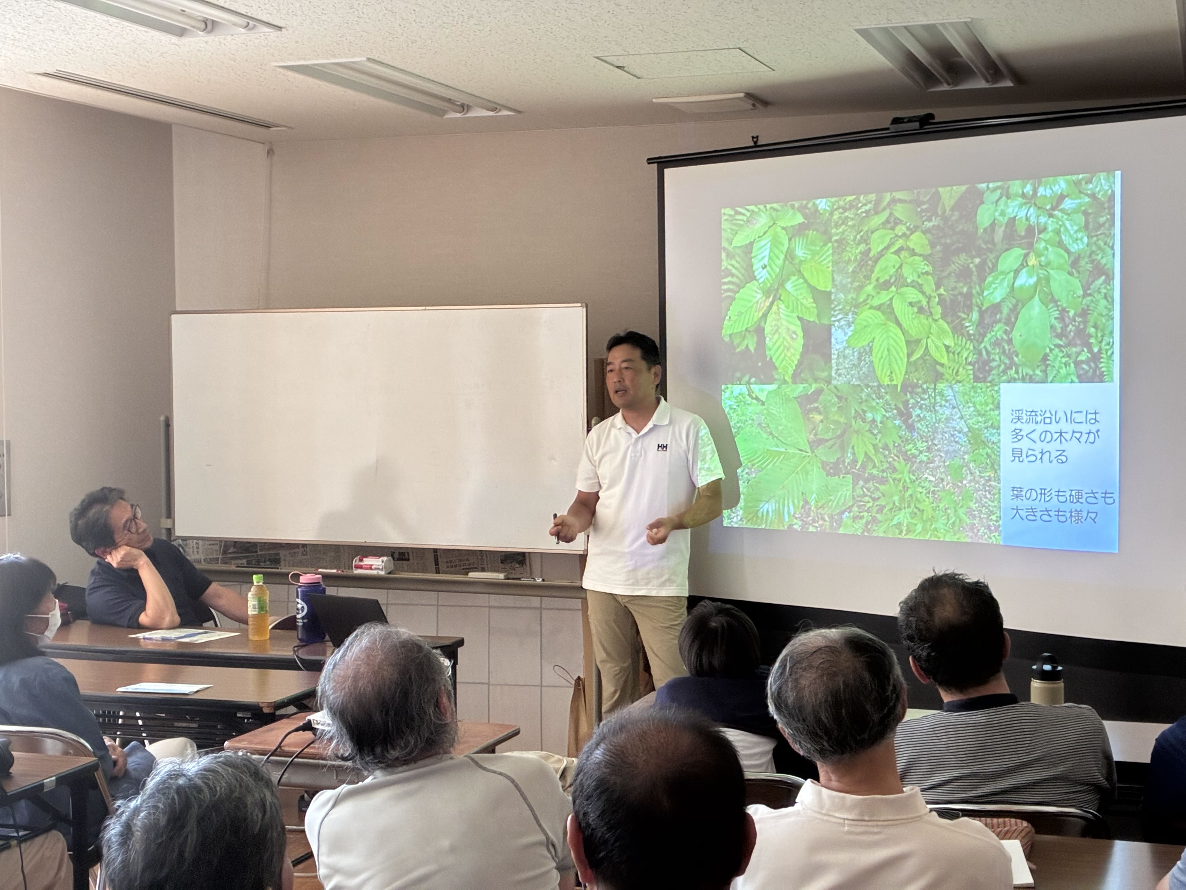 2025年9月6日(土)、新潟大学佐渡自然科学共生センター教授の河口洋一博士を迎え、現在開催中の企画展「豪雪に育まれた豊かな川辺の生態系」に関連して只見町ブナセンター講座を開催しました。参加者は26人で満員御礼でした。講座の内容は、河口博士のご専門である「森と川のつながり」に関する研究等を中心に進みました。