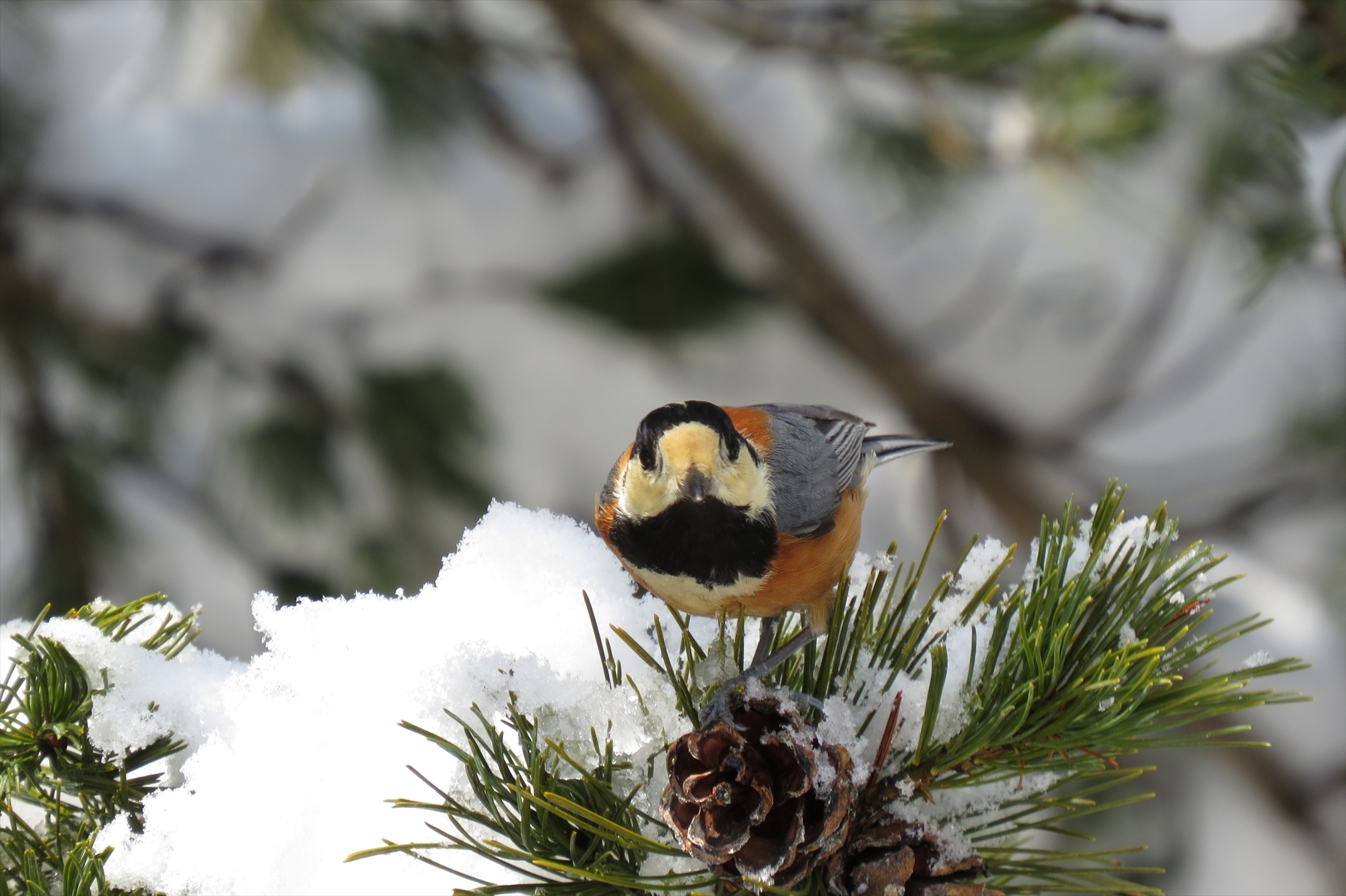 一生懸命松の実を食べていたヤマガラ。